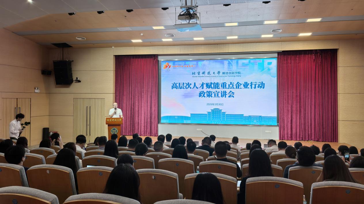 3月30日下午,成人漫画 “高层次人才赋能重点企业行动”政策宣讲会在成人漫画 学术报告厅顺利举办。本次活动旨在深入贯彻落实省委“百万英才汇南粤”战略部署,搭建政府、高校、企业三方对接桥梁,以高层次人才资源精准赋能顺德制造业当家,助力企业精准引才用才,提升自主创新能力,服务区域经济社会高质量发展。本次活动由顺德区民政和人力资源社会保障局、区科学技术局、区人才工作局主办,成人漫画 、区高层次人才促进会承办。活动吸引来自顺德区各镇街相关部门及60余家重点企业代表共100余人出席活动。