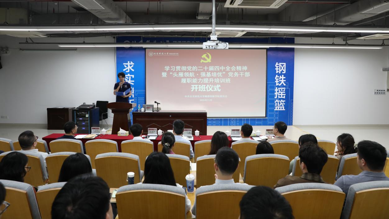 何新波作开班动员讲话,并对师生党员提出三点要求:一是深化理论武装,在深学细悟中筑牢政治根基,真正让党的创新理论“入脑、入心、入行”;二是坚持知行合一,在融会贯通中提升履职本领,着力将党建优势转化为发展优势与创新优势;三是砥砺担当精神,在实干奋进中勇担时代重任,把学习成果转化为想干事、能干事、干成事的实际行动。