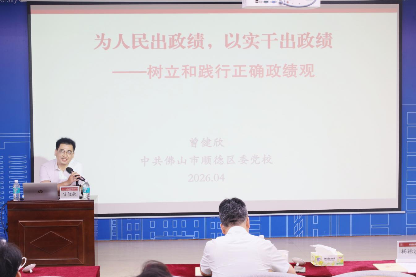 读书班邀请中共佛山市顺德区委党校副校长曾健欣作专题辅导报告。曾健欣以“为人民出政绩,以实干出政绩——树立和践行正确政绩观”为题,从深刻领会树立和践行正确政绩观的重大意义、准确把握树立和践行正确政绩观的丰富内涵、自觉贯彻树立和践行正确政绩观的实践要求三个维度,用鲜活的案例、深刻的剖析、系统的梳理,深刻解答“政绩为谁而树、树什么样的政绩、靠什么树政绩”的根本问题。整场报告既有理论深度,又有实践警示,教育引导大家受警醒、存敬畏、明底线、懂知止。